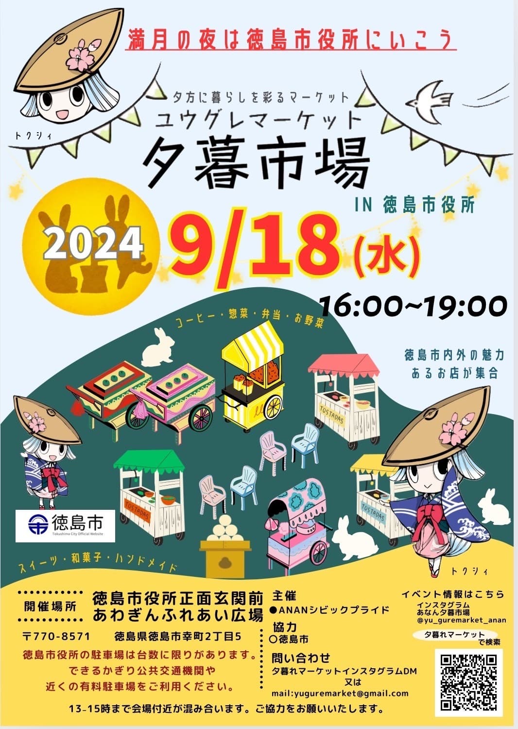 徳島市役所で開催される夕暮れマーケットに出店します!